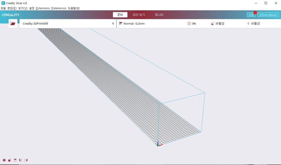 여튼 이제 본격적으로 슬라이싱을 해보면 이게 45도로 출력되다보니 기존에 우리가 알고 있던 슬라이싱에 대한 상식은 적용이 안되는 부분이 많습니다 ㅋㅋㅋ