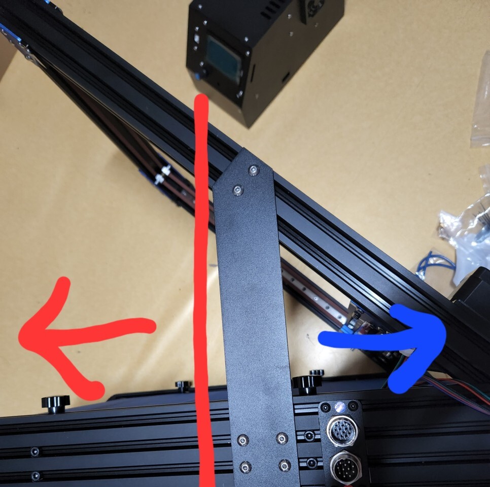 프린터 앞쪽 빨간 화살표 쪽으로 기울어진 부분은 서포트가 필요하다...반대로 파란 화살표쪽은 오버행에 구애받지 않고 출력할수 있다는 장단점.