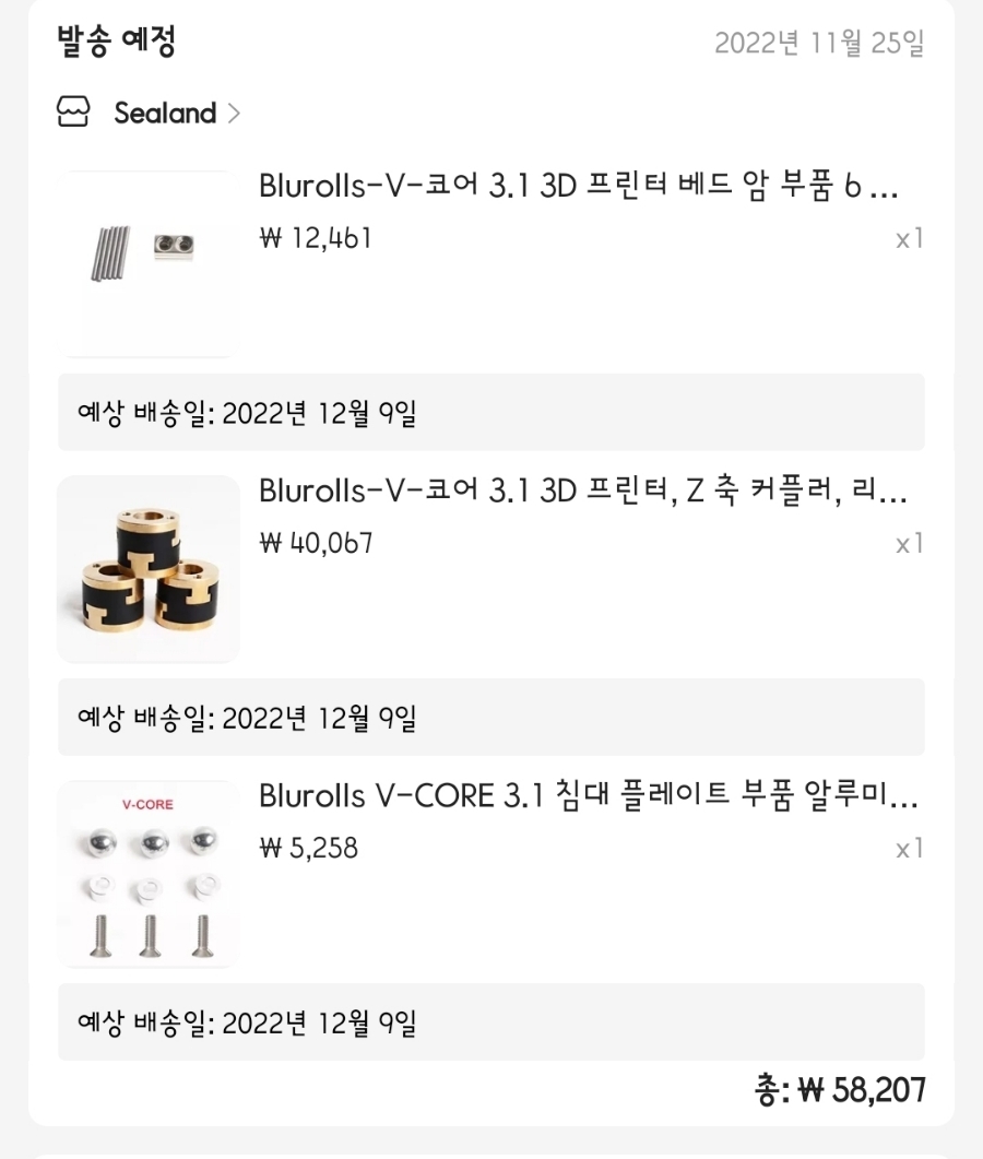 올덤 커플러는 모터에는 달아서 써봣는데 .. 리드스크류 중간에 넣는 방식이라 괜찮을거같아서 한번 사봤습니다. 어디까지나 욕심에 영역이라.. 이건 저렴이로 간다면 빼도 될듯 ㅋㅋ