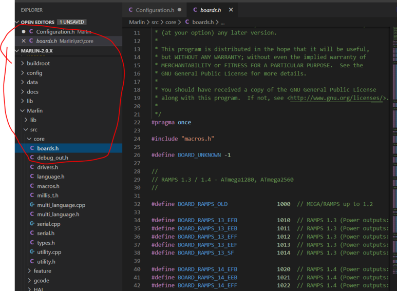 이렇게 옆의 메뉴에서 Marlin > src > core > board에 들어가서 찾으시면 됩니다.