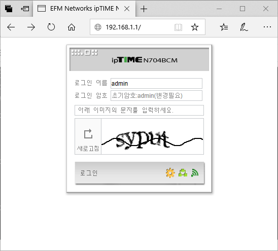 인터넷브라우저에 주소에 아까 확인한 게이트웨이 주소를 입력.