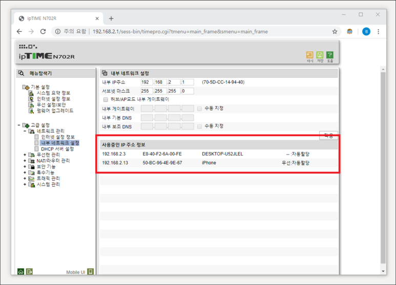※모든공유기가 그런것은 아니지만, 대다수 공유기가 이방법으로 확인합니다.