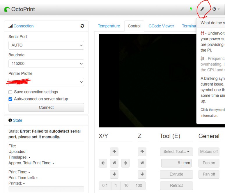 이제 이 상태로 프린터에 전원을 넣고 옥토파이에 접속해봅니다.