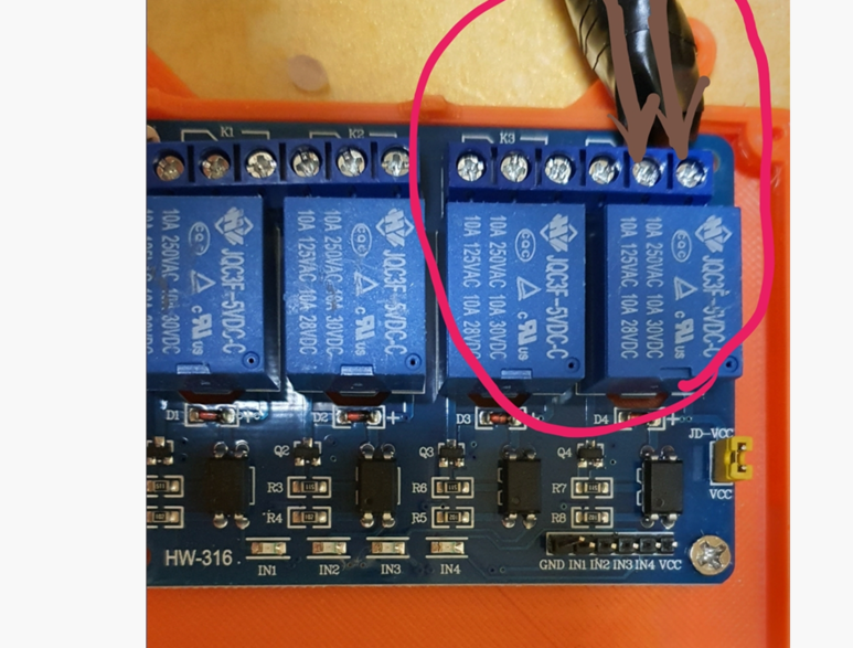 (((이사진에는 IN1에 연결햇는데 K4에 전원선을 물렸다면 IN4에 연결하는게 맞습니다;;;ㅎㅎㅎㅎ))))