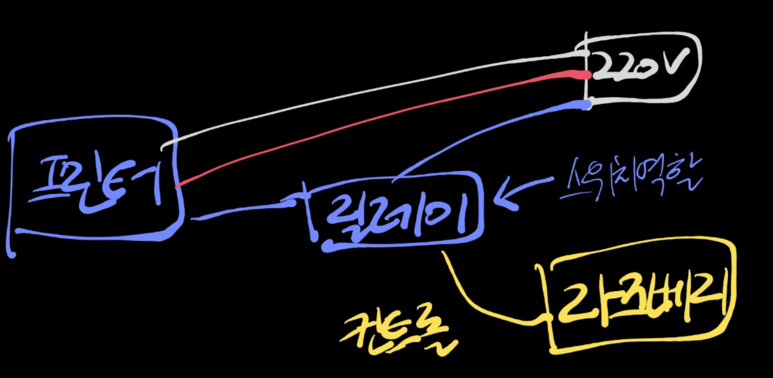 간단히 설명하면 우리가 쓰는 220볼트 전원케이블을 까보면 노란색 접지선과 갈색, 파란색 전원선이 나옵니다.