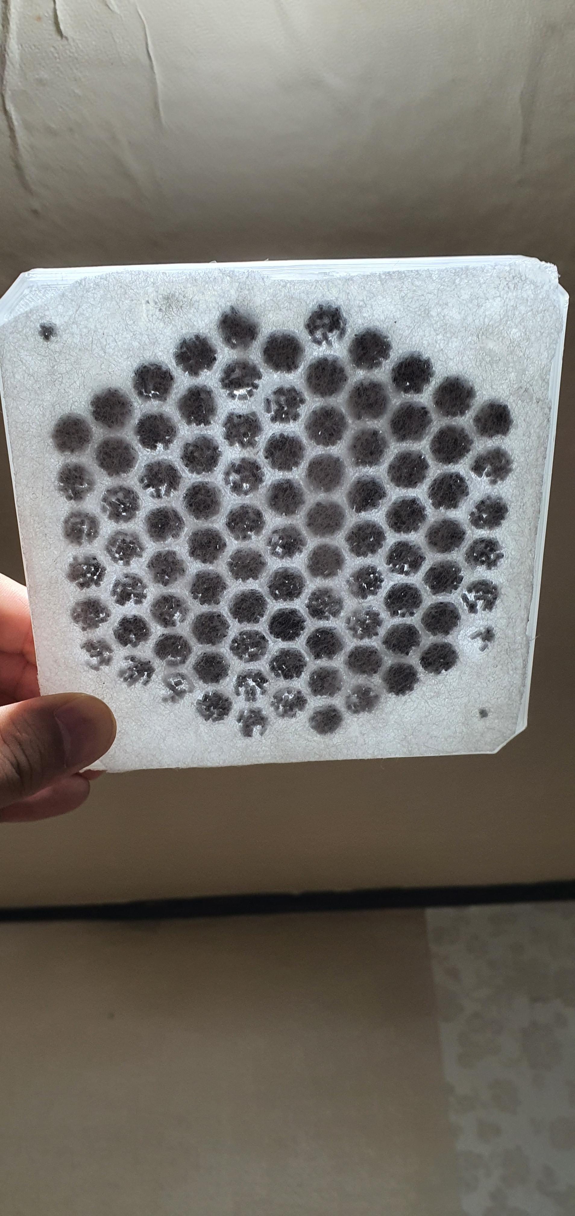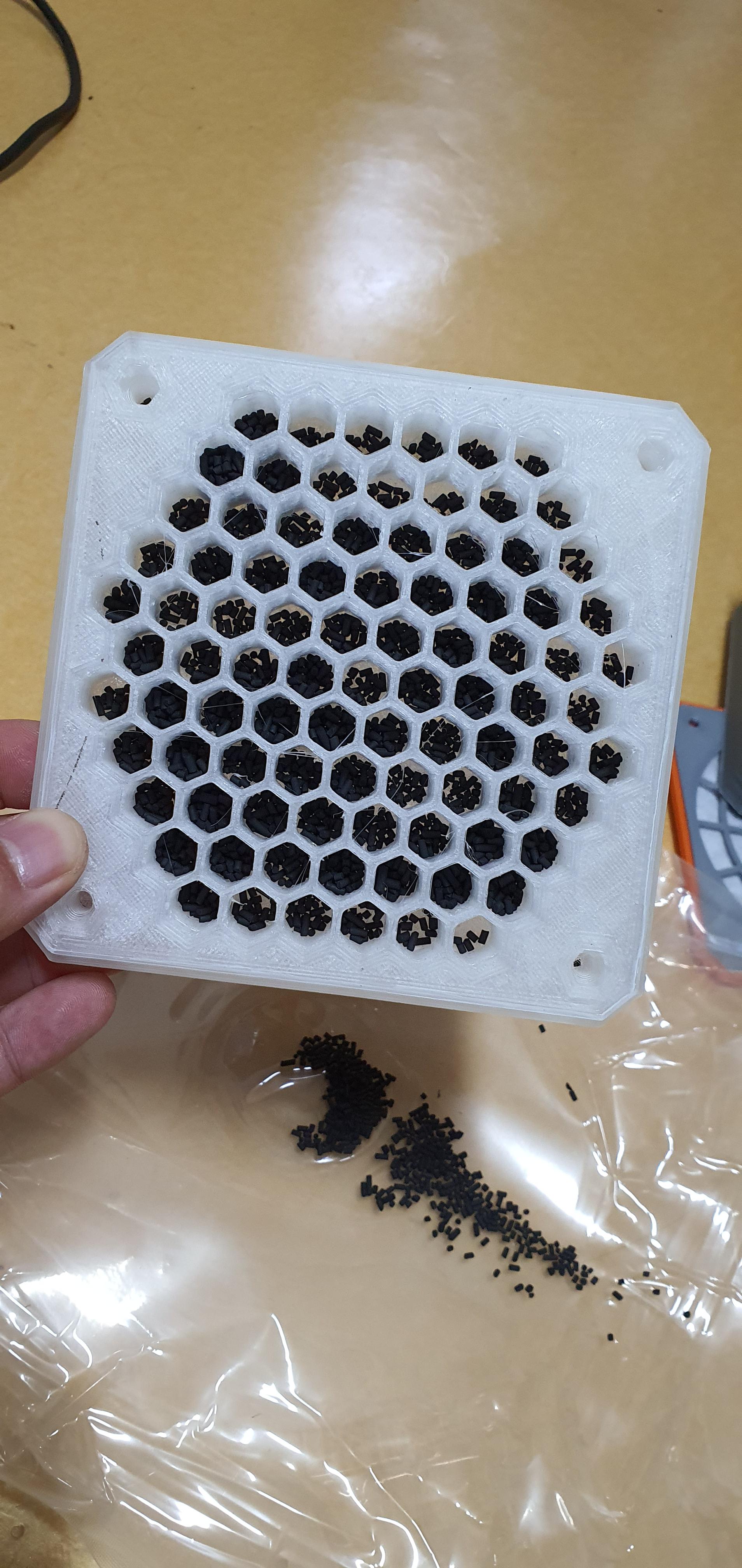 헥사곤 벌집들안에 분말이 아닌 조립 활성탄이 들어잇음.