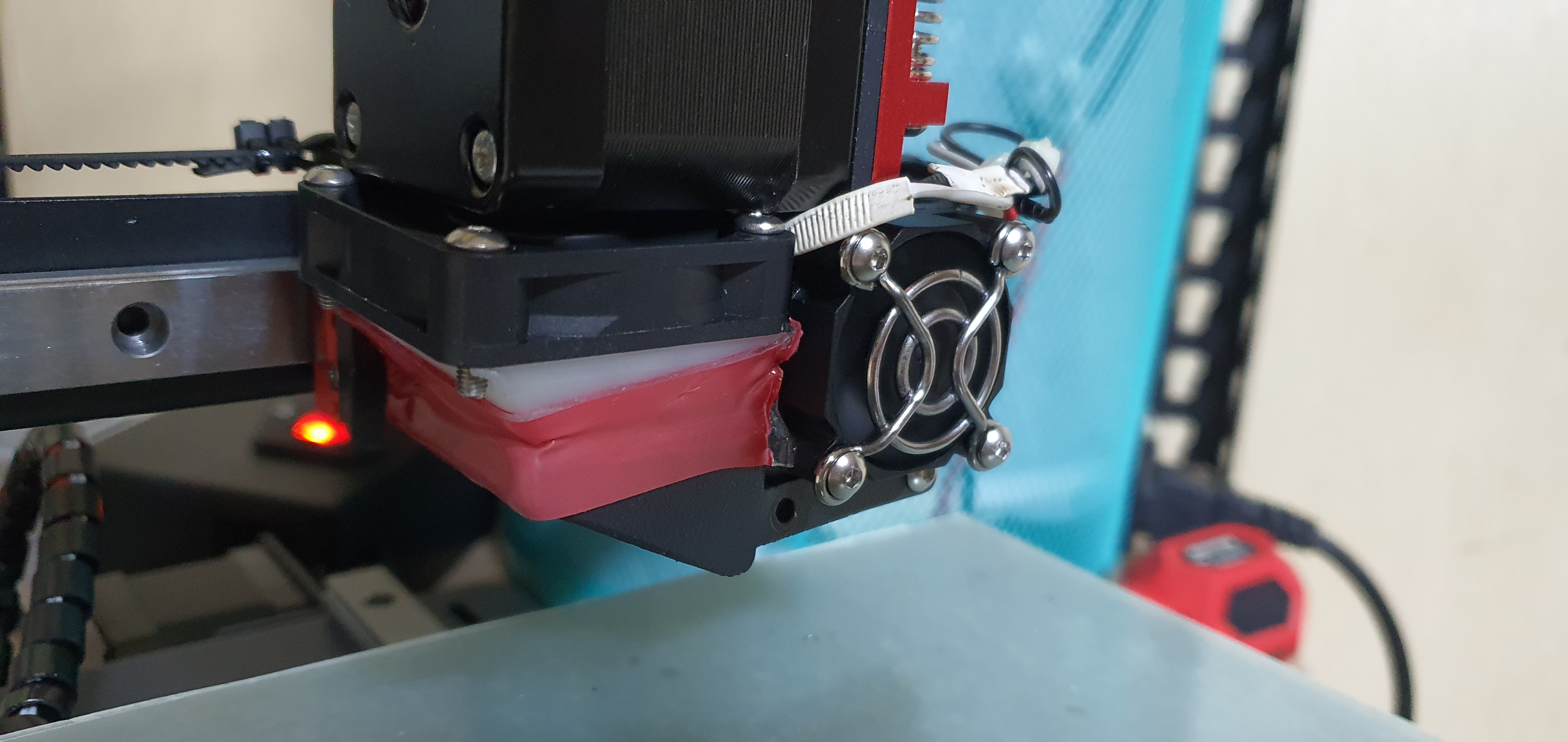 달고나서 빨강 우레탄 테이프로 틈새 메꿔주고 출력 테스트중...