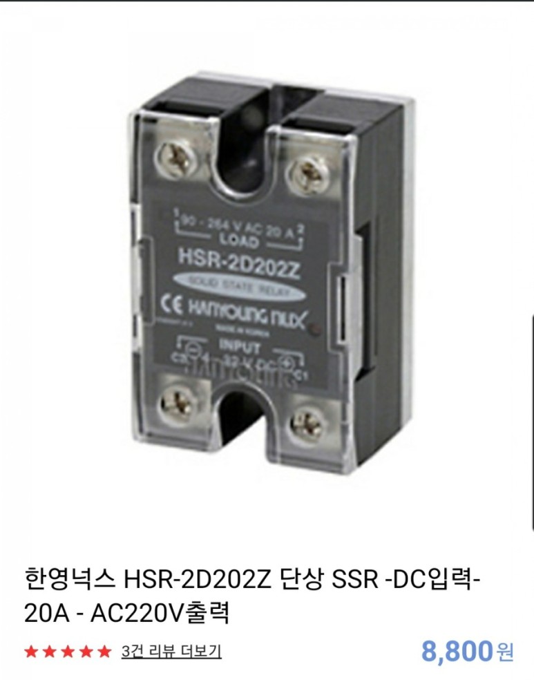 SSR에 빨간불이.들어오며 히팅이 시작된다. ㅎㅎ