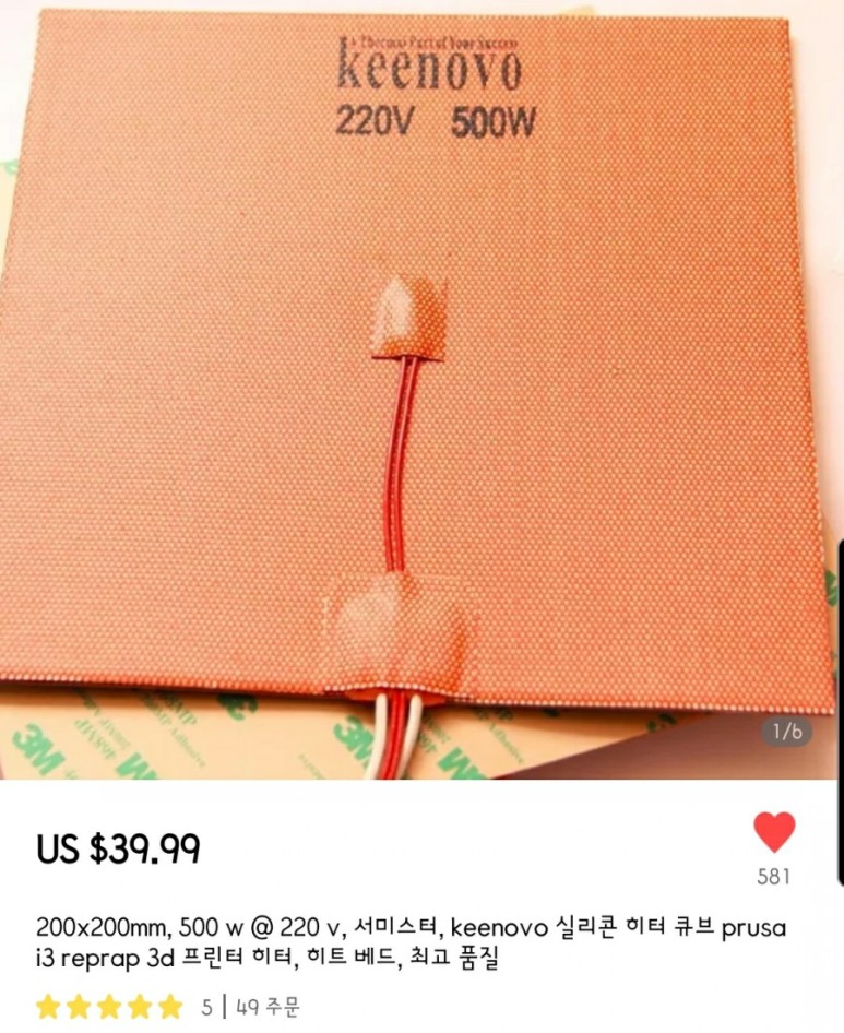 안전을 위해 평이 좋은 keenovo 220v 500w 제품을 구매함...가격은 다른거에 비해 두배정도 ㅠㅠ