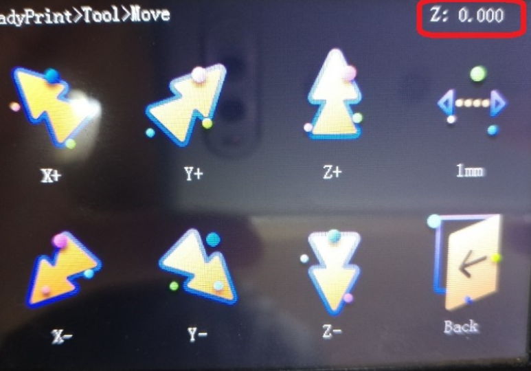 z축 (+) (-)를 눌러 노즐의 높이를 원하는 간격으로 맞춥니다. 그러면 그다음 부터는 그 간격으로 그대로 출력 됩니다.